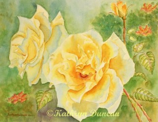 With the yellow roses painting, Yellow Moonbeams”, I was trying to achieve more dramatic lights and darks, interesting negative spaces, along with color harmony in the background.