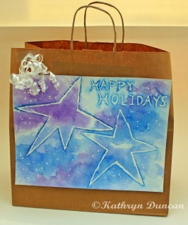Here’s some examples of holiday gift bags I’ll be teaching participants to make, using watercolors, at Whole Foods Market in Ann Arbor on Sunday 12/1 from 2pm to 3:30 pm.