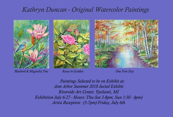 Come join us at the Artist Reception on July 6th, 5 to 7 pm for refreshments, art viewing, and awards presentations at Riverside Arts Center in Ypsilanti.