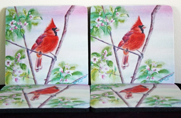 This is one of my new items on Etsy – Art Drink Coasters or mini mouse pads. Pretty and practical! 4″x4″ x 1/4″ thick. What do you think? http://www.etsy.com/listing/83327405/drink-coasters-bird-painting-set-of-4