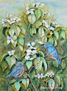 I’m absolutely fascinated by birds, especially songbirds. My paintings below are of hummingbirds, butterflies, bluebirds, blue jay, cardinals, and Baltimore Orioles. I enjoy painting male and female bird pairs and showing the differences in their coloring. My bird pairs are also symbolical of life renewing itself, and togetherness.